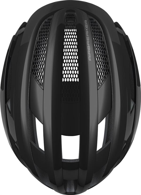 Abus Airbreaker Shiny Black. Abus har nyudviklet en racerhjelm i samarbejde med Team Movistar. Det er blevet til et unikt design til den krævende landevejsrytter. Der er lagt fokus på ventilation/afkøling og aerodynamik. Multi Speed design tilbyder ventilation som ryttere ønsker det: maksimal ventilation på langsommere kuperede ruter og optimal aerodynamik i hurtigt fladt terræn. Zoom Ace skruespænde i nakken for individuel tilpasning.